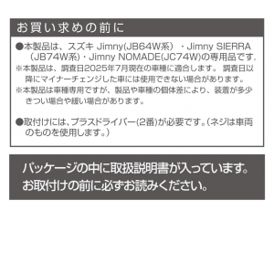| ●左右ドアグリップの機能・感触をそのままでポケット化できます。(重さ1Kg以内) ●グリップの下側に取付けるので、握る部分が狭くなりません。(車両のネジを使用して固定) ●深底設計で大きいスマホの収納でも安心です。(ドアグリップを含め深さ約90mm) ●開閉できるフラップ付きで、ポケット内の掃除や底に落ちた小銭・ゴミなどを取る時に簡単で便利です。 ●フラップを開けるとコイン(500 円硬貨×3枚)や紙幣が入れられる「収納スリット」付きです。 ●ポケット内の底にはガタツキ防止のクッションシート付きです。 ●左右2個セット。 ●掲載の製品は、スズキ Jimny(JB64W系)・Jimny SIERRA(JB74W系)・Jimny NOMADE(JC74W系)専用です。 ※Jimny NOMADE(JC74W系)の【後席】には、取付けできません。 ※一部の車種には、取付けできない場合があります。詳しくは、下記の適合表をご確認ください。 <適合表のリンク> ※本製品は、調査日2025年8月現在の車種に適合します。 調査日以降にマイナーチェンジした車には使用できない場合があります。 ●掲載の製品の適合型式 : Jimny(JB64W系) 【1型~4型】、 Jimny SIERRA(JB74W系)【 1型~4型】、Jimny NOMADE(JC74W系)【 1型 】 ※詳しくは、下記の型式表をご確認ください。 <型式表のリンク> ※本製品は、調査日2025年7月現在の車種に適合します。 調査日以降にマイナーチェンジした車には使用できない場合があります。 |