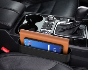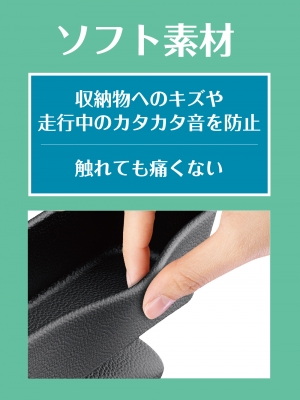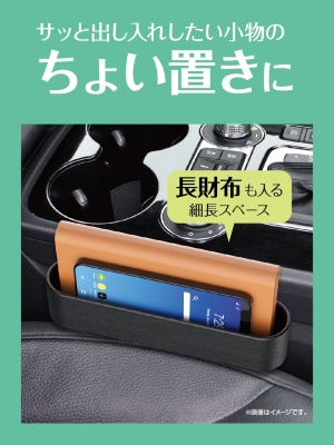 | ●ソフト素材のコンパクトな増設収納トレイです。 ●スマホ・駐車券・小銭などの小物から、置き場所に困りがちな長財布も収納できます。 ●シートの上に設置する浅めのトレイなので、ペンや小銭などの小物でも出し入れしやすく便利です。 ●車内への接触傷とカタカタ音を防止し、触れても痛くない柔軟性のあるソフト素材です。 ●シートサイドに差し込むだけの簡単取付けで、ベンチシートにも設置できます。 ●車内に馴染む本革調デザインです。 |