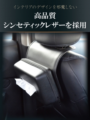 | ・ヘッドレストに取付けるセミハードタイプのティッシュケースです。 ・車内に馴染む厚手の高品質シンセティックレザーを使用しています。 ・しっかり感があるセミハードタイプなので、ソフトパック・ボックスがつぶれにくく、ティッシュを取出す際に破れにくいです。 ・ソフトパックティッシュや厚みが65mmまでのボックスティッシュまで幅広く対応します。 ・取付け用リングをヘッドレストのシャフトに通すだけで簡単取付けです。 ・ファスナー開閉タイプなのでヘッドレストに取付けたままティッシュを交換できます。 Amazonでご購入はこちら |