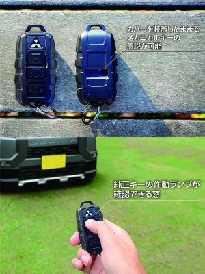 | ・デリカミニの純正スマートキーを保護する専用キーカバーです。 ・スマートキーを傷から護り、タフネスにドレスアップします。 ・着脱が簡単な挟み込み式カバーです。両面テープを使わないのでテープ跡が残りません。 ・衝撃吸収構造の採用により、落下時の衝撃を緩和します。 ・カバーを装着したままでボタン操作やメカニカルキーの着脱ができます。 ・キーホールを装備しているのでキーホルダーの取付けが可能です。 ・付属の3ボタン型専用のボタンパッドに交換できます。 |