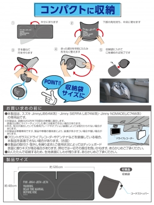 | オープンプライス ■製品サイズ : H480 x W1260 x D3 ■パッケージ : H215 x W230 x D70 270g ■小箱サイズ : H235 x W475 x D370 10個入 ■外箱サイズ : H500 x W495 x D385 20個入 ■ジムニー/ジムニーシエラ/ ジムニーノマド(JB64W/JB74W/JC74W系)専用設計 ■JAN: 4974267301155 Amazonでご購入はこちら |