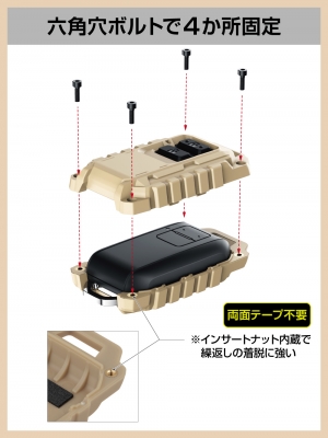 | 【5月中旬発売予定】 ・純正スマートキーを保護するキーカバーです。 【アイボリー】 ・4か所の六角穴ボルトでしっかり装着でき、傷や衝撃から純正スマートキーを守ります。 ・衝撃吸収構造の採用により、落下時の衝撃を緩和します。 ・両面テープを使わないのでテープ跡が残りません。 ・カバーを付けたまま、ボタン操作やメカニカルキーの着脱ができ、純正キーの作動表示灯も確認できます。 ・キーホールにキーホルダーやストラップが取付けられます。 ・六角穴ボルト、六角レンチ、キーリングを付属しています。 ・2トーン仕様にアレンジ可能。 ※2トーン仕様にするには、異なる色を2色ご購入ください。 ●掲載の製品は、スズキ Jimny(JB64W系)・Jimny SIERRA(JB74W系)・Jimny NOMADE(JC74W系)専用です。 ※一部の車種には、取付けできない場合があります。詳しくは、下記の適合表をご確認ください。 <車種別適合表のリンク> ●掲載の製品の適合型式 については、下記の型式表をご確認ください。 <型式表のリンク> |
