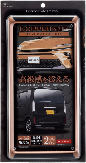 | ・カッパーと艶黒パネルを組合わせ、落ち着いた高級感あるナンバーフレームです。 ・カッパー&クリアの2層塗装仕上げです。 ・普通車・軽自動車兼用の前後セット。 ・ナンバーフレームの基準・法規定に適合した製品です。 |
