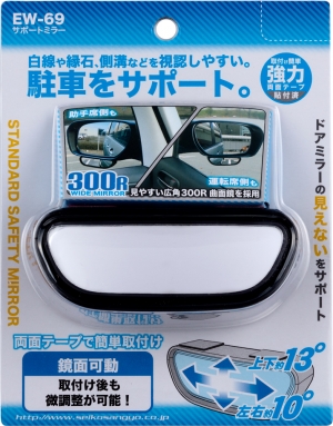 | ドアミラーの視界を妨げない吊下げタイプのサポートミラー バックでの駐車時に白線・縁石・側溝を視認 見やすい広角R300曲面鏡を採用 ![]() Tweet |