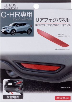 | ●貼付けるだけで、純正リアフォグランプ風にドレスアップできるパネルです。 ●シンプルなノーマル仕様のリアスタイルをスタイリッシュに変身。 ●洗練されたレンズカットデザインが透けるクリア素材です。 ●両面テープで貼付けるだけの簡単装着。 ●センターマフラー風にドレスアップできる別売のC-HR専用リアフォグガーニッシュ(EE-210)と併用できます。 ●対応車種: トヨタ CH-R ZYX10/NGX10/NGX50系 前期2016 年12 月以降 2019 年10 月18 日より前の車種 ※トヨタ純正リアフォグランプ搭載車(寒冷地仕様)には取付けができません ※後期2019 年10 月18 日以降の車種には取付けができません |