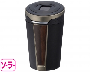 | 斜めワイドトップが使いやすい木目調デザイン灰皿 フタはワンプッシュオープンで消火穴クリーニング機能付き スーパースリムの太さまで(5~8mm)対応の消火穴とタバコ置き |