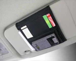 | 収納スペースをプラスする便利なハーフバイザー 小さなサンバイザーにも取付けられるハーフタイプ マジックベルト2本でしっかり固定 |