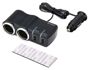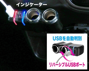 | ●USB機器の充電状態の目安を示すインジケーター付きUSB2ポートと、12V2連ソケットを搭載したコードタイプソケットです。 USBポートは、USBプラグの表裏を気にせず挿せるリバーシブルタイプで、更に接続した機種を自動で判別し機種に合った電流値で最適充電を行う自動判別機能を搭載しています。 USB出力は5V/2.4A×2ポート(合計4.8A)と高出力です。 お車のソケットの内径がφ21mm~φ22.5mmまでの車種に使用可能です。 |