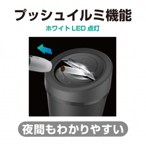 | ●プッシュイルミ機能(ホワイトLED点灯)が付いて、夜間も便利な加熱式タバコ専用の吸殻入れです。 ●開閉がラクなプッシュ式の蓋なので、素早く吸殻を捨てられて、臭いもカットします。 ●IQOSの吸殻を、蓋で挟んで引抜く簡単リリース機能付きです。 ●IQOSの吸殻が60本以上入る大容量です。 |
