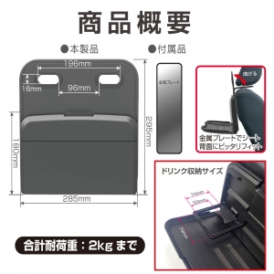 | ●USB電源付きヘッドレスト取付けのリアトレイです。 ●タブレットやスマホで映画などを長時間視聴する際、バッテリー残量を気にせずに楽しめます。 ●取付けベースの素材はインテリアになじむ、高級感がある本革調合成皮革を採用しています。 ●トレイの位置*が低めに設置されているので使いやすいです。(*当社従来品より約10cm低い位置) ●シートの背面にフィットし、揺れ防止にもなる金属プレートを付属しています。 ●5V/2.4A×2ポート(合計4.8A)のUSBを搭載。電源コード約2.5mのロングコードです。 ●12V電源カープラグは、お車のソケット内径がΦ21㎜~22.5㎜までの車種に使用可能です。 ●夜間USBポートがホワイトに光り差込み位置がわかりやすい。 ●ヘッドレストの取外しが可能な車種に対応しています。 |