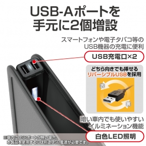 | ●シートサイドとコンソールの隙間に取付ける便利なポケットです。 ●車内のUSB-Aポートを手元に2個増設できるので、スマートフォン等の充電に便利です。 ●表面に高級感がある本革調素材を採用しています。 ●暗い車内でも使いやすいように、USBポートにはポケット内を照らす白色LED照明が搭載されています。 ●裏表のどちら向きでも挿せるリバーシブルUSBポートを採用しています。 ●落下防止ボードを好みの位置に取付けでき、本製品が隙間に落ち込むのを防止できます。 ●大きさの違う3種類のスペーサーで自由にポケット内をレイアウトすることができます。 ●伸縮バンドをシートベルトバックルに引っ掛けることでポケットの前後のズレを防止できます。 |