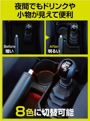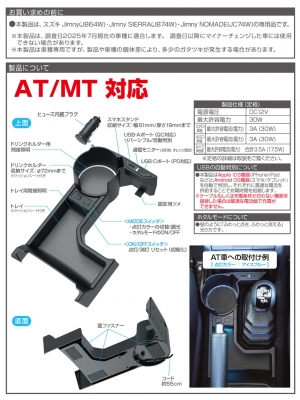 | ・センターコンソールのデッドスペースを収納スペースに有効活用できる増設トレイです。 ・φ72mmまでの飲み物が入るドリンクホルダー、小物を置けるトレイ、スマホなどを充電できるUSBポートを備えています。 ・ドリンクホルダーとトレイの内底に間接照明を装備しているので、暗い車内でもドリンクや小物の出し入れに便利です。 ・間接照明は、8色の単色固定点灯・グラデーション点灯・ホタルモードを選べ、明るさの調整ができます。 ・間接照明は、エンジンを切って再始動しても前回の設定のまま点灯するメモリー機能を搭載しています。 ・USB-A&USB-Cの2ポート搭載で様々な機器に対応できます。 ・USB-AはQC※1、USB-CはPD※2に対応で高速充電が可能です。 ※各ポート単独使用時にQCとPDの各対応機器で最大30Wの高速充電ができます。両ポート同時使用時は合計で 5V/3.5Aになります。 ・収納部の内底はカタカタ音を低減するクッションシート付きです。 ・AT車/MT車のどちらでも簡単に取付けられます。 ※工具不要 ●掲載の製品は、スズキ Jimny(JB64W系)・Jimny SIERRA(JB74W系)・Jimny NOMADE(JC74W系)専用です。 ※一部の車種には、取付けできない場合があります。詳しくは、下記の適合表をご確認ください。 <適合表のリンク> ※本製品は、調査日2025年8月現在の車種に適合します。 調査日以降にマイナーチェンジした車には使用できない場合があります。 ●掲載の製品の適合型式 : Jimny(JB64W系) 【1型~4型】、 Jimny SIERRA(JB74W系)【 1型~4型】、Jimny NOMADE(JC74W系)【 1型 】 ※詳しくは、下記の型式表をご確認ください。 <型式表のリンク> ※本製品は、調査日2025年7月現在の車種に適合します。 調査日以降にマイナーチェンジした車には使用できない場合があります。 |