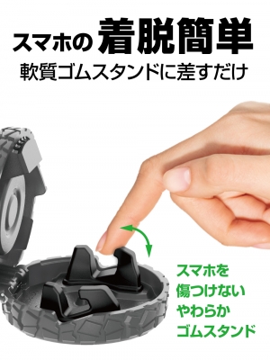| ・オフロード用タイヤデザインの置き型スマホスタンドです。 ・ゴムスタンドに差し込むだけで、スマホをしっかりとホールドできます。 ・フタ付きなので使わない時はコンパクトになります。 ・走行中の安定感とスマホの着脱のしやすさを両立しています。 ・両面テープで簡単に設置でき、車内・オフィス・家庭でも使用可能です。 ・設置後も向きを変えられる回転機構付きです。 Amazonでご購入はこちら |