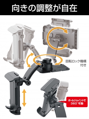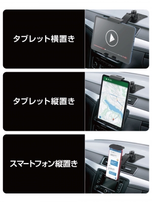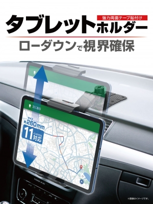 | ・ダッシュボードなどの曲面へ貼付けられるタブレットホルダーです。 ・強力両面テープ付きの貼付けベースは、やわらか素材でしっかりと取付けることが可能です。 ・貼付け後も水平方向に360°向きを変更できる回転機構(任意の向きでロック可能)を搭載しています。 ・カーブアームでローダウンできるので、前方視界を良好に保てます。 ・スマートフォン(縦置き)から11インチのタブレットまで挟めます。 Amazonでご購入はこちら |