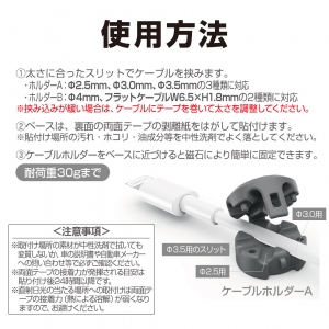 | ●充電ケーブルを磁石で簡単に固定できるケーブルホルダー。 ●ケーブルの散らかりを防止し、整理できます。 ●ケーブルホルダーに磁石を内蔵。金属製の机にも取付け 可能なので、オフィスでの使用にも便利です。 ●5種類の太さに対応できるようにケーブルホルダーが2タイプ付属。 ●ベースは両面テープで簡単取付け。 ●スポーティなカーボン柄。 |