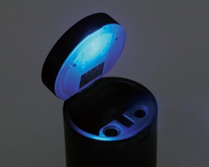 | ●夜間などの暗い場所で便利なブルーLED照明付き灰皿です。 ●LED照明の点灯をスイッチで行うことができます。 ●電源はボタン電池(CR2032)を使用しています。 ●フタ部とカップ部を外せるので、吸い殻が簡単に捨てられます。 ●カップ部は樹脂製ですので、水洗いすることができます。 ●使い易いモミ消しと2つの消火穴を装備しています。 |