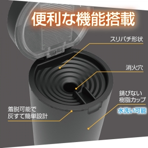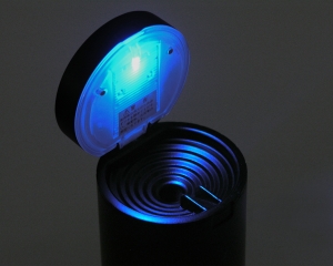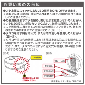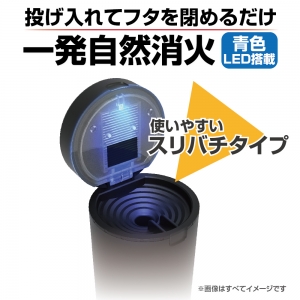 | ●夜間などの暗い場所で便利なブルーLED照明付き灰皿です。 ●LED照明の点灯をスイッチで行うことができます。 ●電源はボタン電池(CR2032)を使用しています。 ●フタ部とカップ部を外せるので、吸い殻が簡単に捨てられます。 ●カップ部は樹脂製ですので、水洗いすることができます。 ●消火穴に吸殻を投げ入れれば自然に消火します(スリバチタイプ)。 |