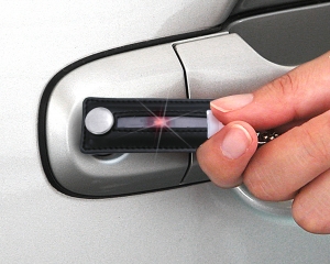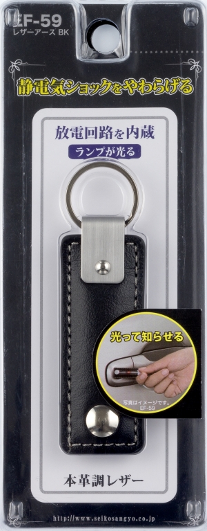 | 静電気除去を光って知らせるキーホルダー 本革調レザーで高級感アップ 放電回路搭載で静電気除去効果アップ |