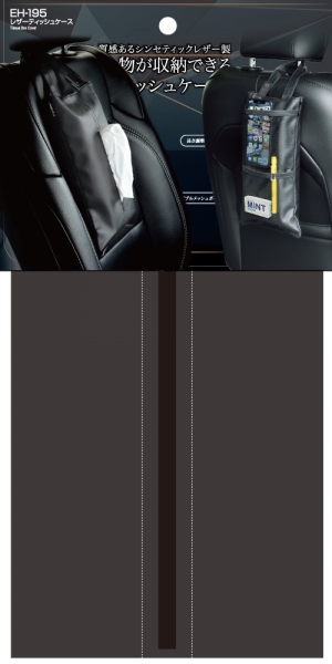 | ●ヘッドレストに取付ける縦向きタイプのティッシュケースです。 ●裏面にメッシュポケットが2段あり、小物が収納できて便利です。 ●詰替え口のマジックテープ止めにより、ケース内のボックスティッシュが見えず、内装に馴染みやすいです。 ●やわらか素材のソフトパックティッシュから厚みが65mmまでのボックスティッシュまで幅広く対応します。 ●高級感がある本革調素材を採用しています。 ●長めのベルトにより、吊り下げたままでティッシュケースを反転させることができるので、ティッシュを取る時とポケットを使う時の切替が簡単です。 |