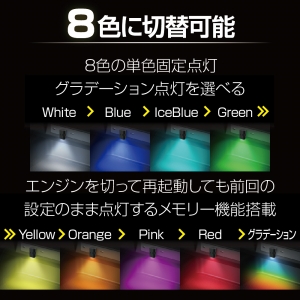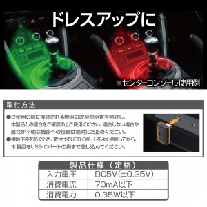 | ●8色の単色固定点灯やグラデーション点灯を選べるUSB-Cポート用のLEDライトです。 ●コンソールBOXやセンターコンソールなどの暗い場所を照らすのに最適です。 ●ON/OFFタッチセンサーにより好きなタイミングで点灯・消灯ができます。 ●明るさの調整やホタルモード*(蛍のような光り方)への切替ができます。*下記参照 ●点灯LEDを切替えると照射方向を変更できるので、車種や機器によって 異なるUSB-Cポートの向き(横・縦)に対応できます。 ●エンジンやモーターを切って再始動しても前回の設定のまま点灯するメモリー機能を搭載。 ●USB-Cプラグなので取付け場所に合わせてどちらの向きでも差し込めます。 |