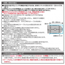 | ●純正アクセサリーソケットのフタの中に納まるコンパクトサイズのUSB Type-Aポート ●充電コードを引き抜いたときにUSBポートごと引き抜ける現象を軽減するシリコーンストッパー付き ●取外す時に便利なイジェクトリングを採用 ●12V/24V車対応のUSB充電プラグです。 ●USB機器の充電状態の目安を示すインジケーターを採用しています。 ※充電中は「赤色」、充電完了時は「青色」にインジケーターが変化します。 ●USBポートは接続した機種を自動で判別し機種に合った電流で最適充電を行う自動判別機能を採用しています。 各ポートで独立した制御を行いますので、異なる機種を同時に挿してもそれぞれ最適な充電を行えます。 ●USBの表裏を気にせず挿せるリバーシブルUSBポートを採用しています。 ●5V/2.4AのUSBを1ポート搭載しています。 ●お車のソケットの内径がφ21mm~φ22.5mmまでの車種に使用可能です。 |