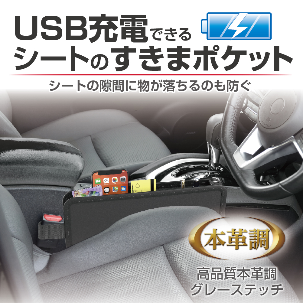●暗い車内でも使いやすいように、USBポートにはポケット内を照らす白色LED照明が搭載されています。