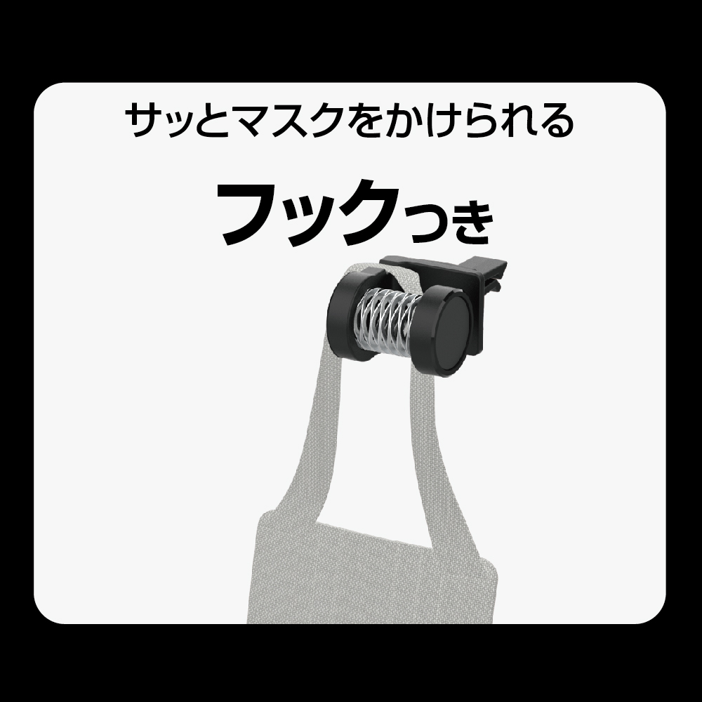 | ●波型の特殊バネで作られた多目的クリップです。 ●充電コードやカード、更にはペンなどの厚みのある物も挟めます。 ●360度全ての方向から差し込むことができます。 ●付属の両面テープで本体を縦向き、横向きにして貼付けることができます。 ●付属のクリップと両面テープでエアコンルーバーに取付けることができます。 ●本体にはマスクをかけられるフック機能がついています。 |