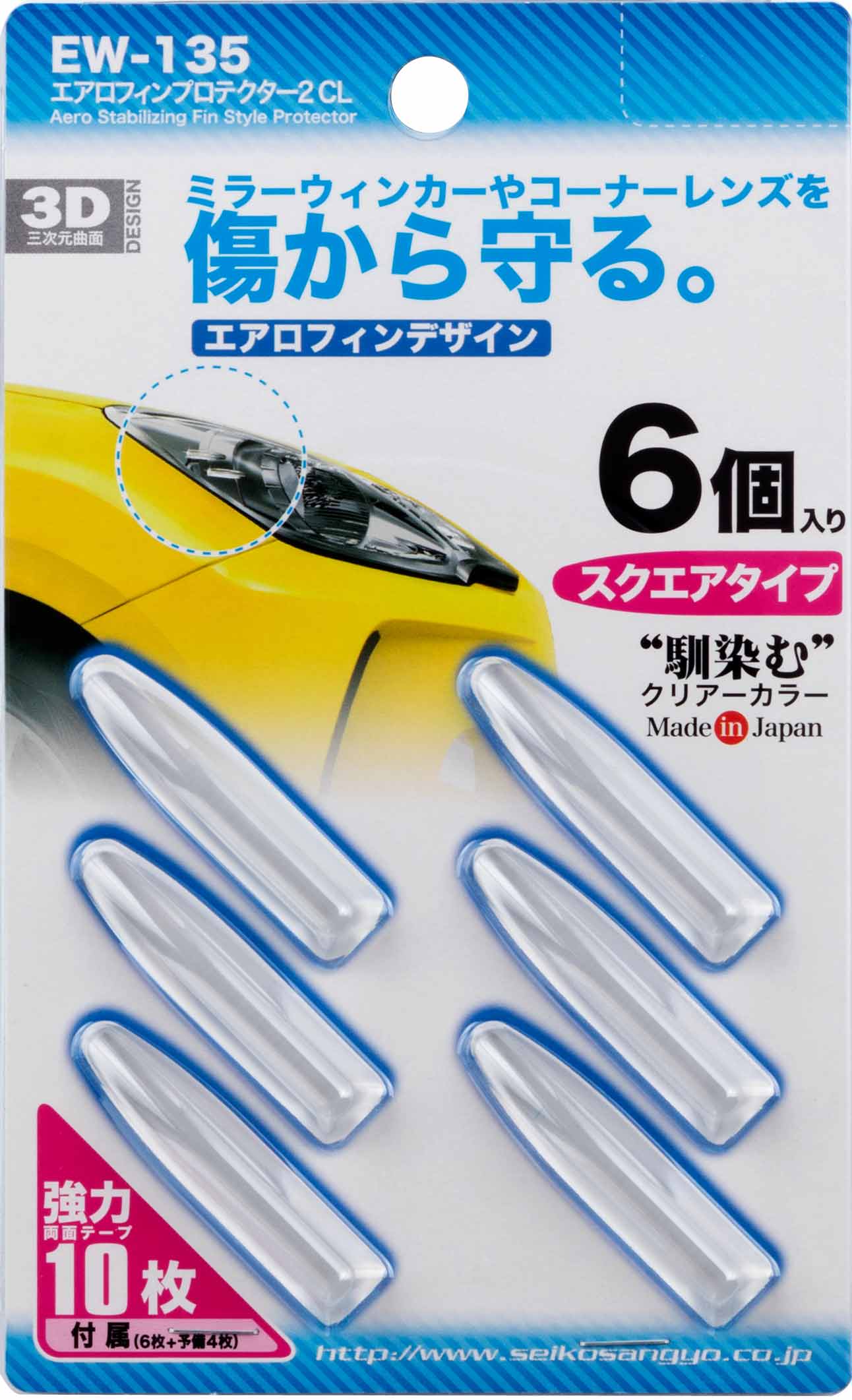 | エアロフィンデザインのプロテクター(スクエアタイプ) スタイルを崩さないコンパクトな透明素材(クリア) 3M製強力両面テープ10枚付属(本体6個1セット) ![]() 両面テープの貼付け方法はコチラ |