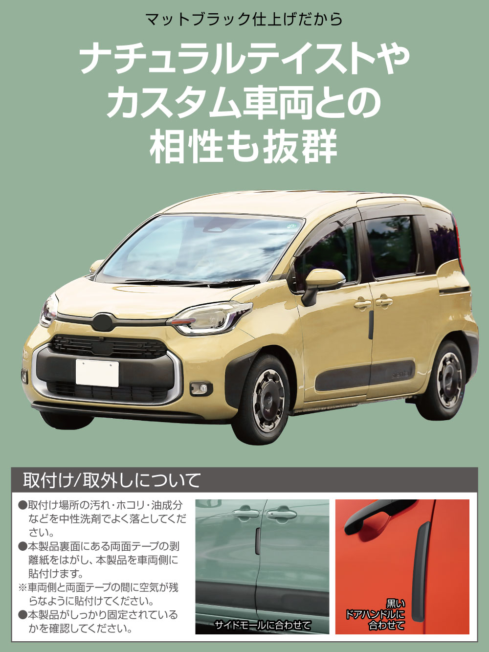 | ・余計な装飾や凸凹がないシンプルなデザインの【ロングサイズ】プロテクターです。 ・ロングサイズなのでドアだけでなく、バックドアやリアゲートなどのエッジ保護にも有効です。 ・サイドモールや黒いドアハンドルに似合うマットブラック仕上げです。 ・アースカラーを施したアウトドアテイストの車両やSUVなどに最適です。 ・主張しないデザインのため軽バンやトラックなどの商用車、営業車にもマッチします。 ・弾力がある軟質素材でドアエッジを傷から護り、他車への接触キズも防ぎます。 ・耐候性・耐摩耗性に優れた軟質樹脂を使用しています。 ・両面テープでボディ表面にぴったりと貼付くため、取付後、隙間に苔などが発生しにくい設計です。 Amazonでご購入はこちら |