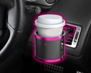 | コンビニコーヒーや缶・500mlペットをホールドできるA/Cホルダー 4点サポートのシリコンラバーが、安定感を高め振動音も抑える 角度可変アジャスター採用で傾斜面にも水平に取付け可能 |