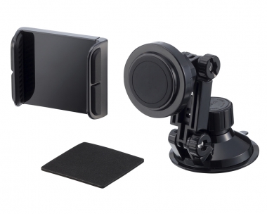 | スマホを素早く着脱できるマグネット式スマホホルダー 片手でホルダーごと取外せて便利 取付自在な吸盤タイプ(凹凸面用のゲルと補助板が付属) |