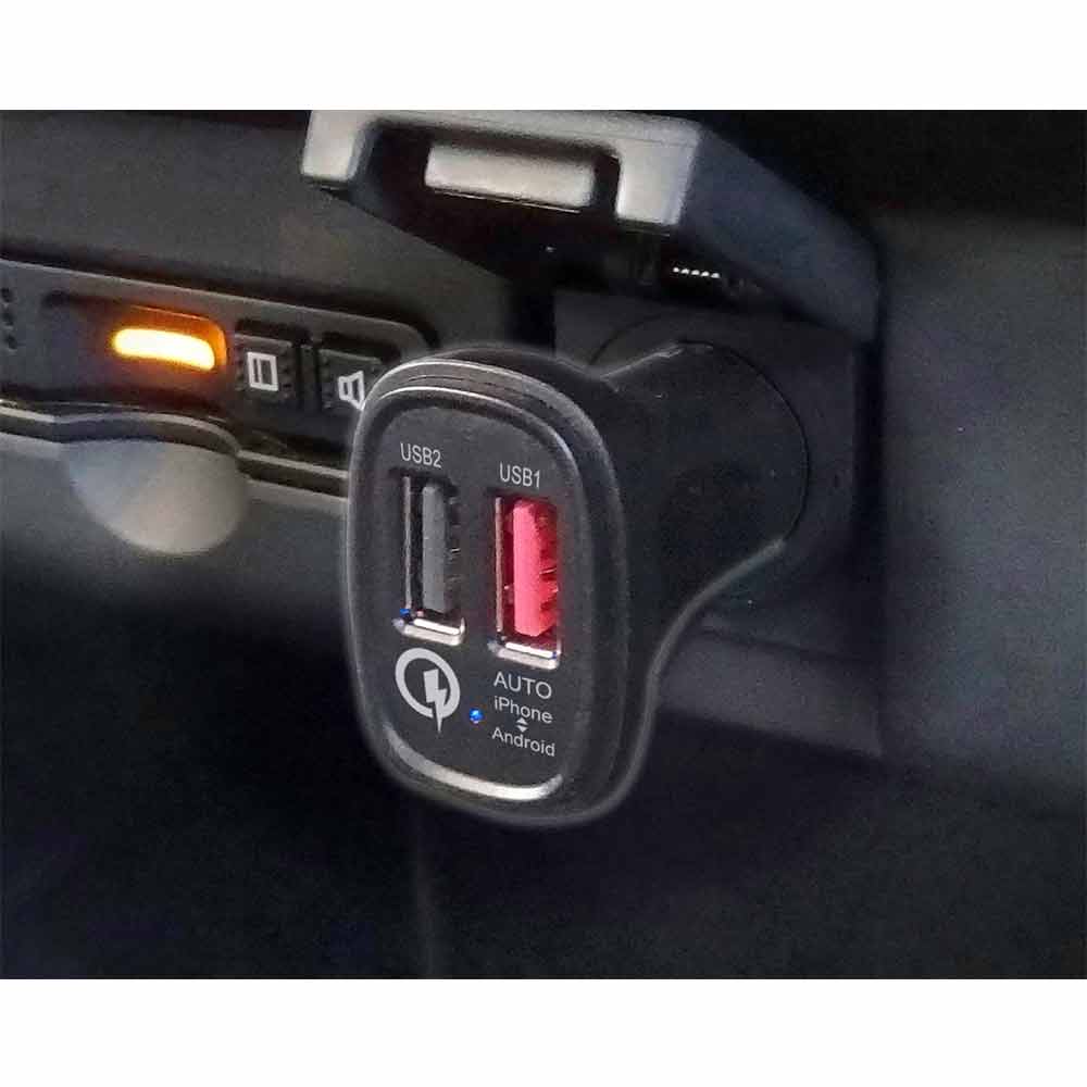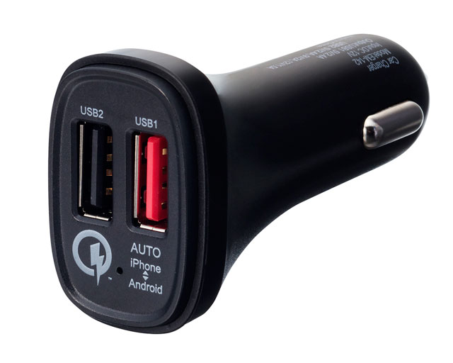 | 本製品はQualcomm® Quick Charge™2.0認証品です。 Qualcomm® Quick Charge™2.0対応のスマホ/タブレットを急速充電できるUSB ポートとiPhone/Androidを最適充電できる自動判別のUSBポートを搭載しています。 ※急速充電ポート対応端末:docomo/急速充電2 au,SoftBank/クイックチャージ2.0 ※急速充電ポートのUSB出力:5V/2.4A 9V/2A 12V/1.5Aで適切に充電値を切り替え ※自動判別ポートのUSB出力:5V/2.4A DC12V車専用です。(マイナスアース車のみ) |