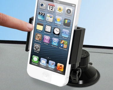 | シンプルな薄型デザインで、スマホの画面をタッチしやすい 配線に便利なコードホルダー付きジョイント 取付自在な吸盤タイプ(凹凸面用のゲルと補助板が付属) |