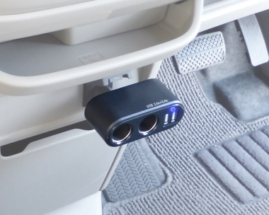 | 12V2連ソケットと5V/2.4A×2ポートのUSBを搭載したソケット USB出力は余裕の5V/2.4A×2ポートで合計4.8A 首振り機構で向きが自在な取付け簡単ダイレクトタイプ |
