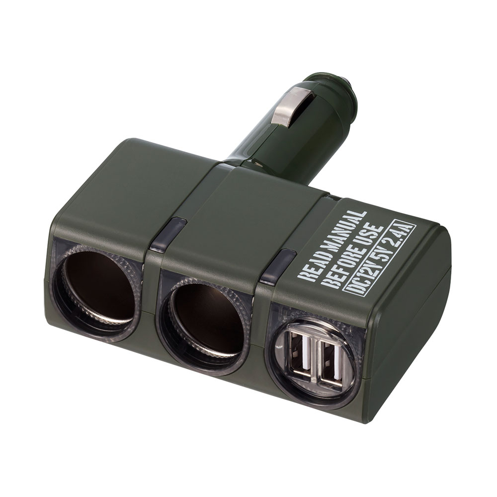 | お車のソケットに差し込むだけで使える簡単取付けのダイレクトタイプです。 ●USBポートは接続した機種を自動で判別し機種に合った電流で最適充電を行う自動判別機能を採用しています。各ポートで独立した制御を行いますので、異なる機種を同時にさしてもそれぞれ最適な充電を行えます。 ●通電モニターはアンバー色のLEDを2個使用し、夜間の車内を演出します。 ●12Vの2連ソケットと5V/2.4A(合計最大)のUSBを2ポートに分配したソケットです。 ●90°首振りプラグで角度の調整ができます。 ●お車ソケットの内径がφ21mm~φ22.5mmまでの車種に使用可能です。 |