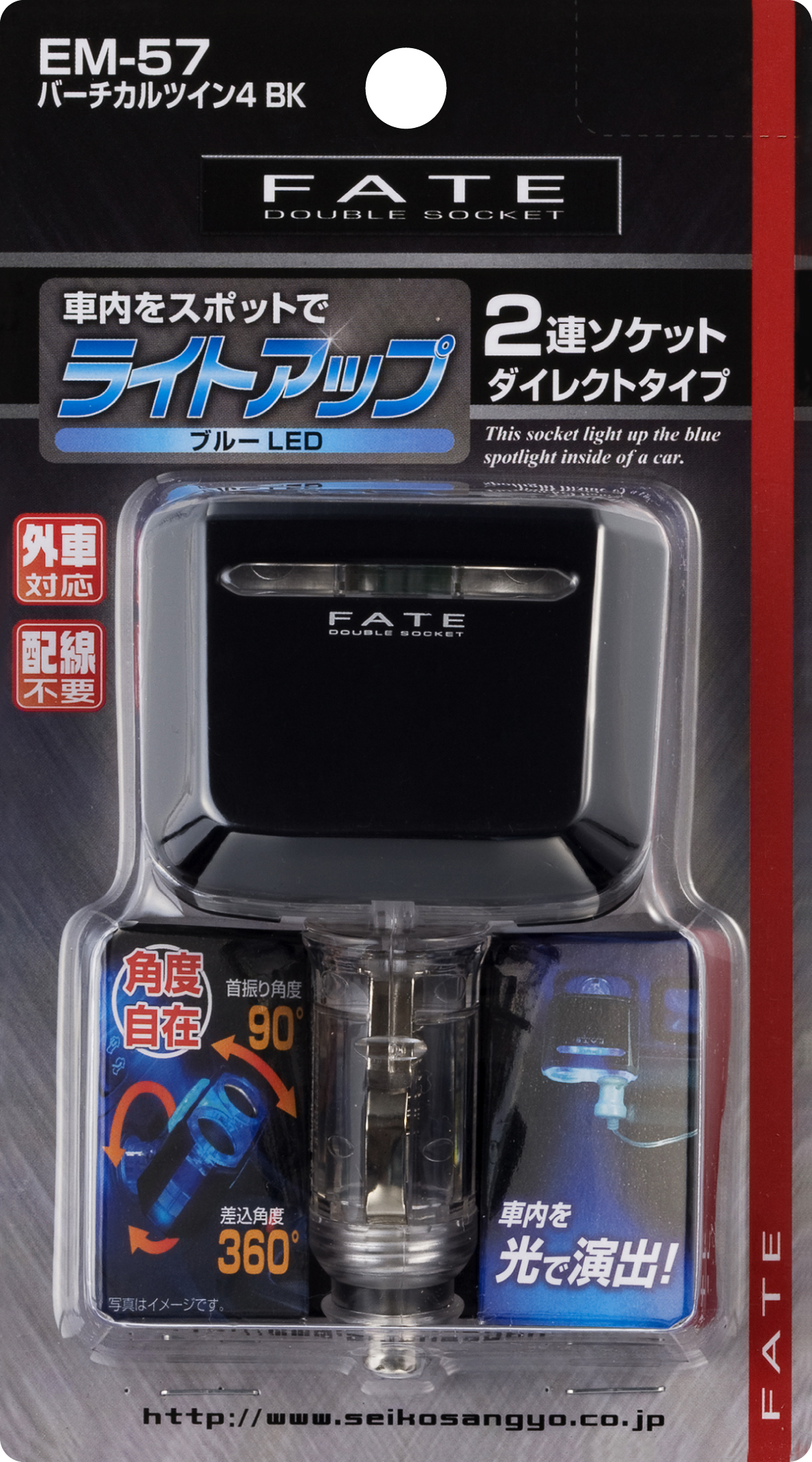 | 立体調整(首振り・回転)のソケット 車内をライトアップするスポットライト付 2連ダイレクトタイプ(ブラック仕様) |