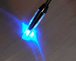 | スリムタイプのレンズでクールに車内を光で演出 シックに輝くブラック光沢ボディ ホワイト/ブルーLEDの2色切換 |