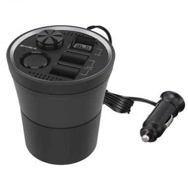 | ●ドリンクホルダーに置いて電源を供給できる、カップ型のソケット(コード長1.2m)です。 ●ホコリなどから端子を守る、12V穴(アクセサリーソケット)キャップと、回転式USBカバーを装備しています。 ●USB機器の充電状態の目安を示す、インジケーター付きUSB×3ポートです。 ※充電中は「赤色」、充電完了時は「青色」にインジケーターが変化します。 ●USBポートは接続した機種を自動で判別し、最適な電流で充電する自動判別IC搭載です。 ※各ポート毎に独立制御しますので、異なる機種を同時に接続してもそれぞれに最適な充電ができます。 ●USBの表裏を気にせず挿せるリバーシブルUSBポートを採用しています。 ●12V×1穴と、5V×3ポート【合計4.8A】(2.4A×1+2.4Aを2ポートで分配)のUSBポートを搭載しています。 |
