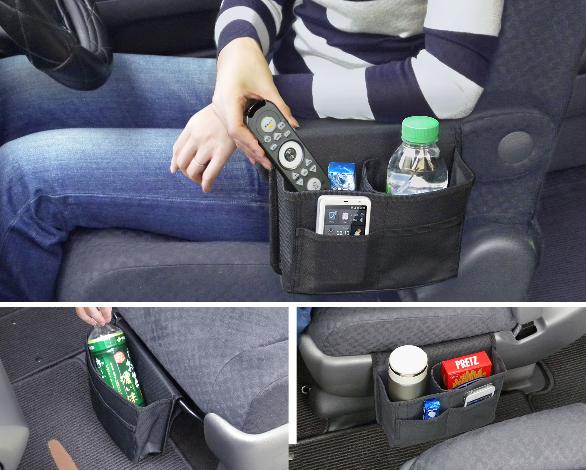 アームレストに取付けて使いやすく便利な収納ポケット