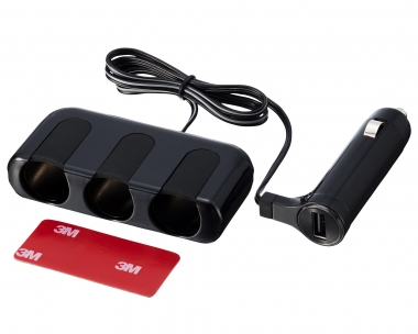 | 12V3連ソケットと5V/2.1AのUSBポートを搭載 厚み最薄(約23mm)デザインのコードタイプ |