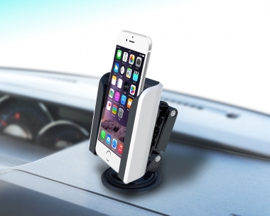 | iPhone 6/iPhone 6 Plus専用のスタイリッシュなホルダー ホルダー上部から差し込むと可動フラップでしっかりホールド 360°左右調整ができる回転ベース(両面テープ貼付け) |