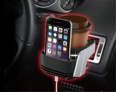 | コンビニコーヒーや缶・500mlペットをホールドできるA/Cホルダー 4点サポートのシリコンラバーが、安定感を高め振動音も抑える スマホ(厚さ13mm・幅80㎜以下)も収納できるスマートポケット付き |