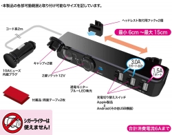 | ヘッドレストに装着できるUSB&ソケット 12Vソケットと5V3.0A(2ポート合計)+1.5A(1ポート) Apple製品とその他USB製品の充電切り替えスイッチ付き |