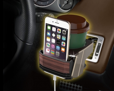 | コンビニコーヒーや缶・500mlペットをホールドできるA/Cホルダー 4点サポートのシリコンラバーが、安定感を高め振動音も抑える スマホ(厚さ13mm・幅80㎜以下)も収納できるスマートポケット付き |
