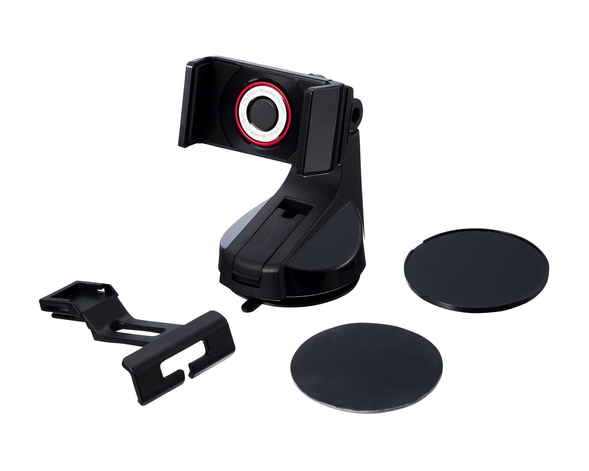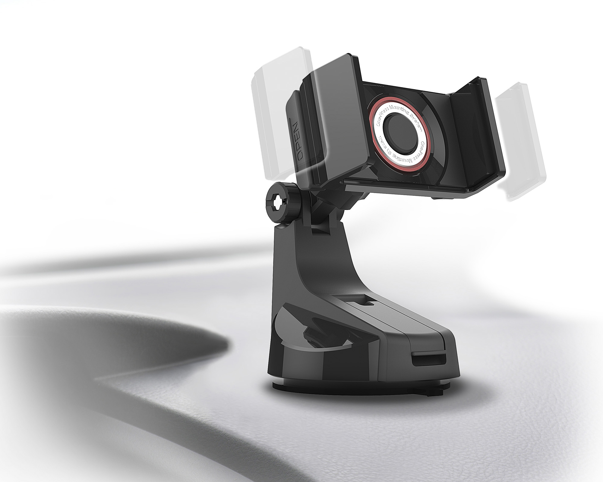 | スマホで押すだけのワンタッチホールド機構 幅60mm~90mm・厚み15mm・耐荷重220gのスマホに対応 取付自在な吸盤タイプ(凹凸面用のゲルと補助板が付属) |