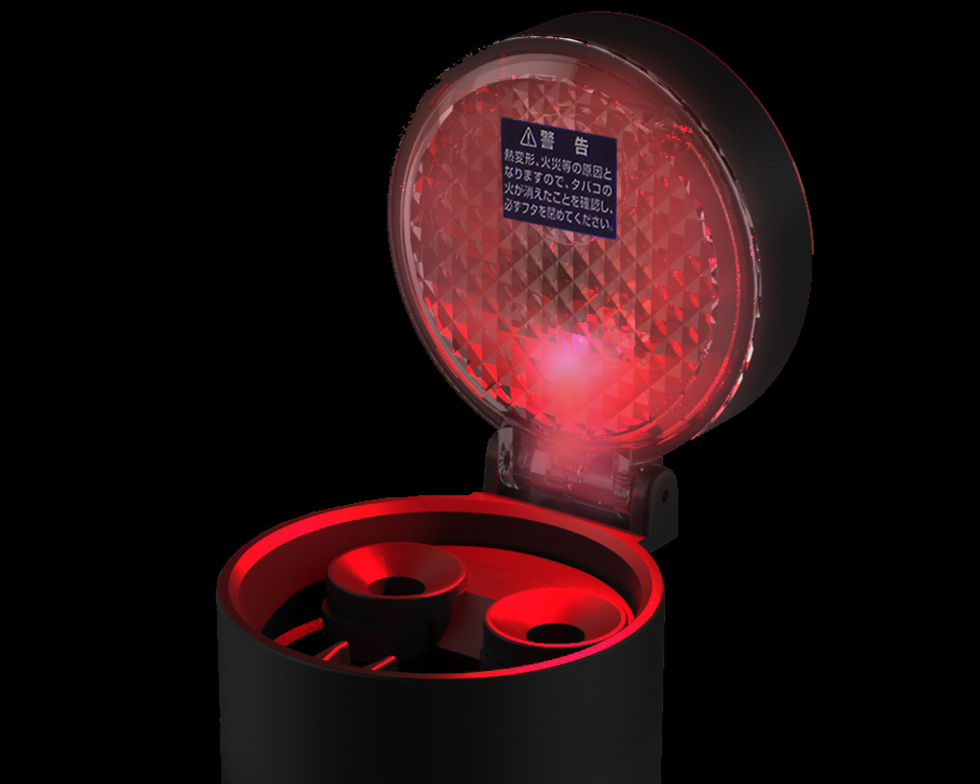 | 夜間などの暗い場所で便利なレッドLED照明付き灰皿 消火穴の詰まりを解消するクリーニング機能付き スーパースリムの太さまで(5~8mm)対応の消火穴とタバコ置き |