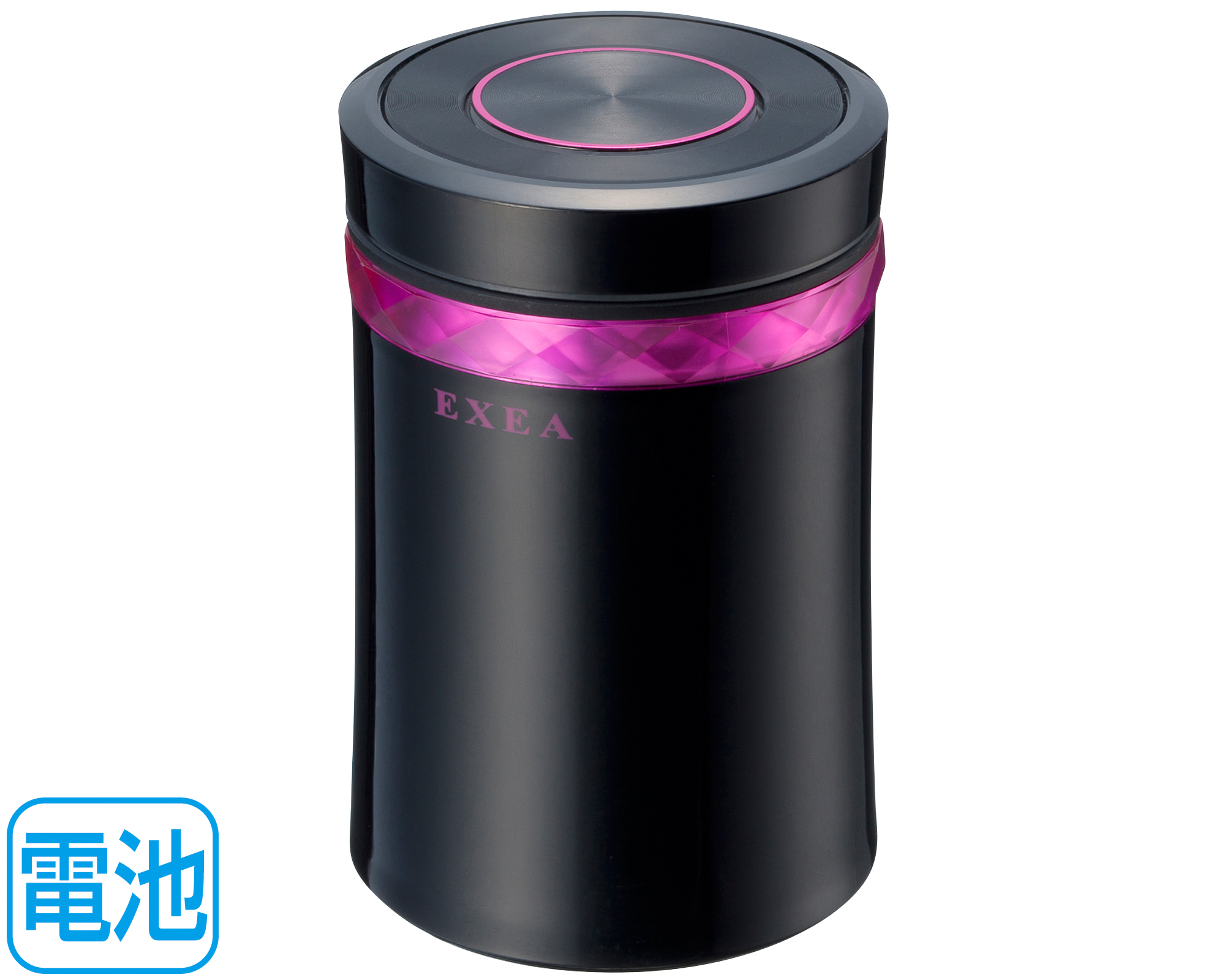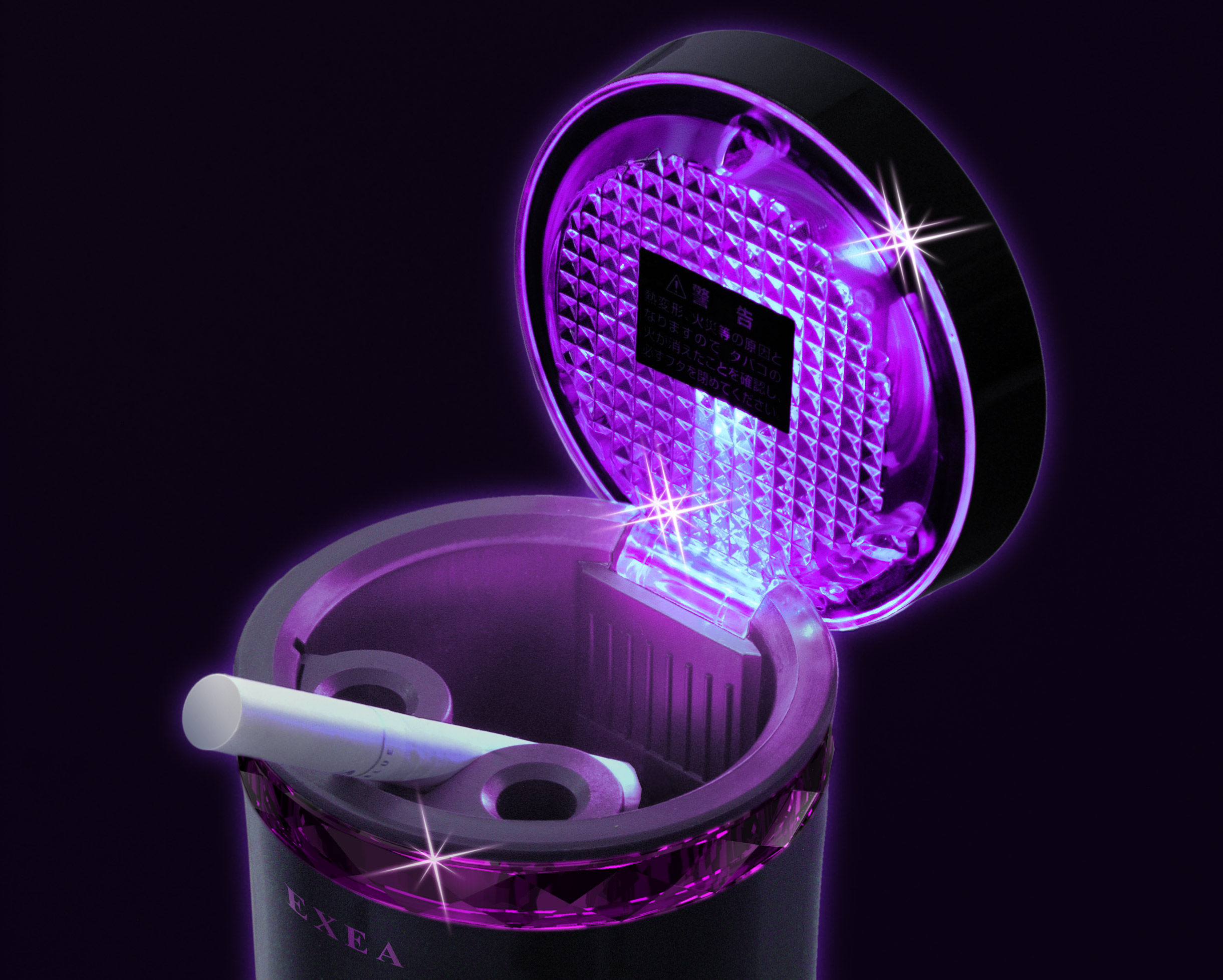 | グラマラスボディにダイヤカットリングを組合わせた灰皿 蓋のスイッチとスリットにピンクのイルミリングが浮び上がる スイッチと電池交換で長く使えるエコタイプ |