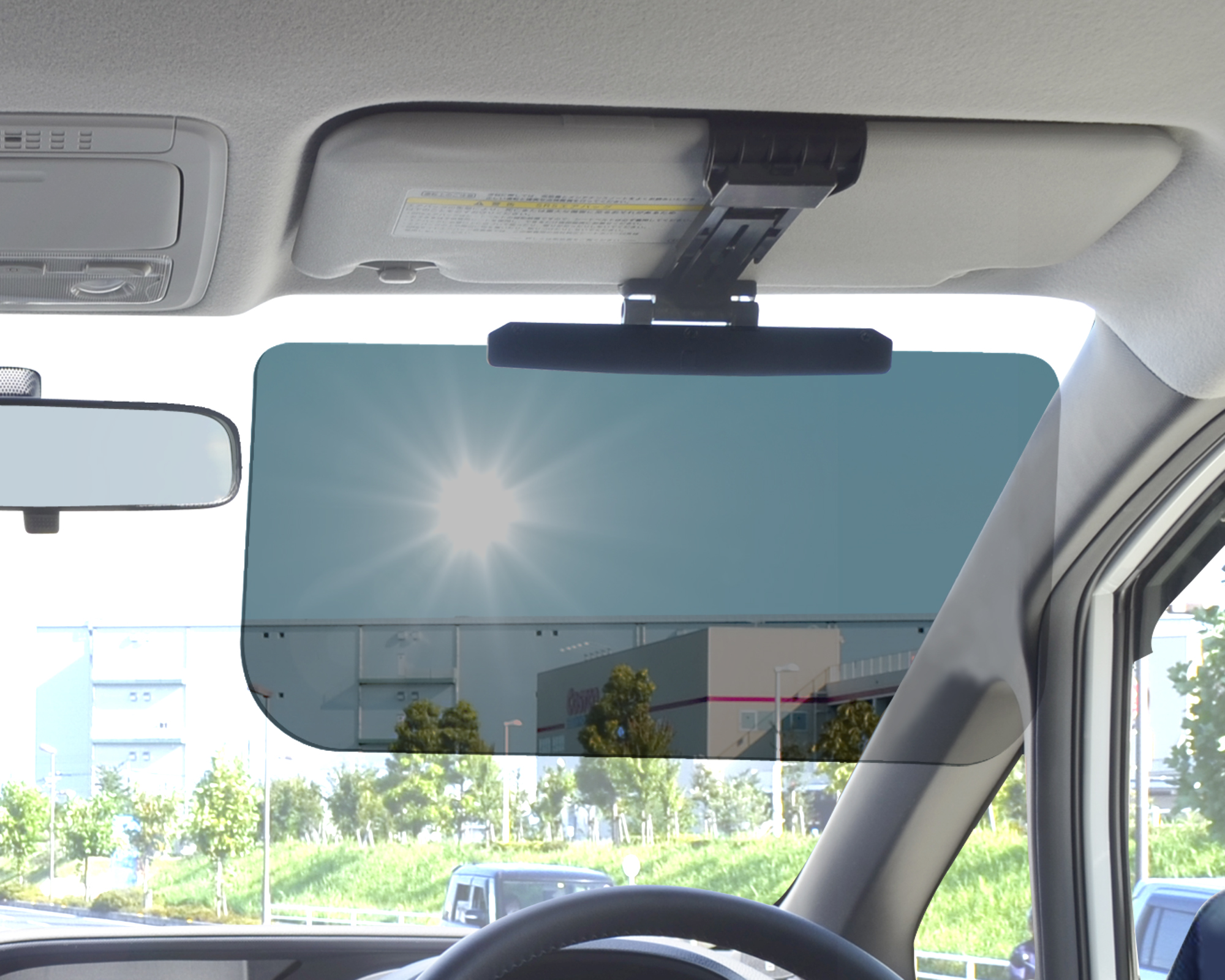 | まぶしい陽射し・UVをカット 純正大型バイザー(奥行幅140~255mm)にも取付け可能 左右90mmスライド(純正バイザーミラー対応) |