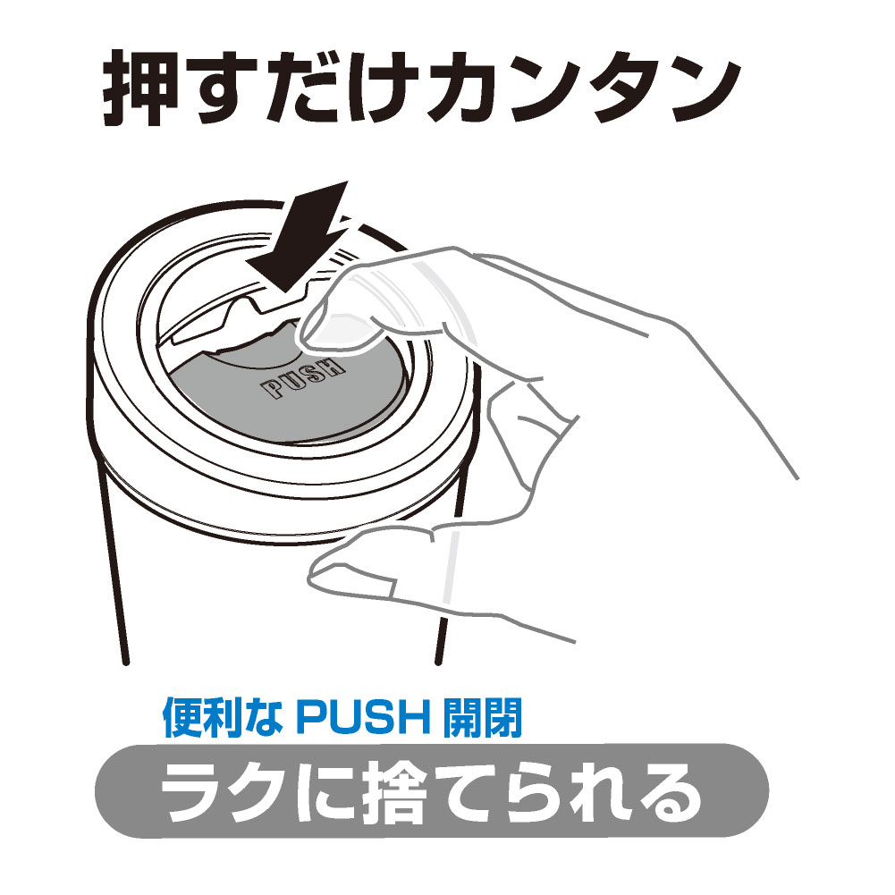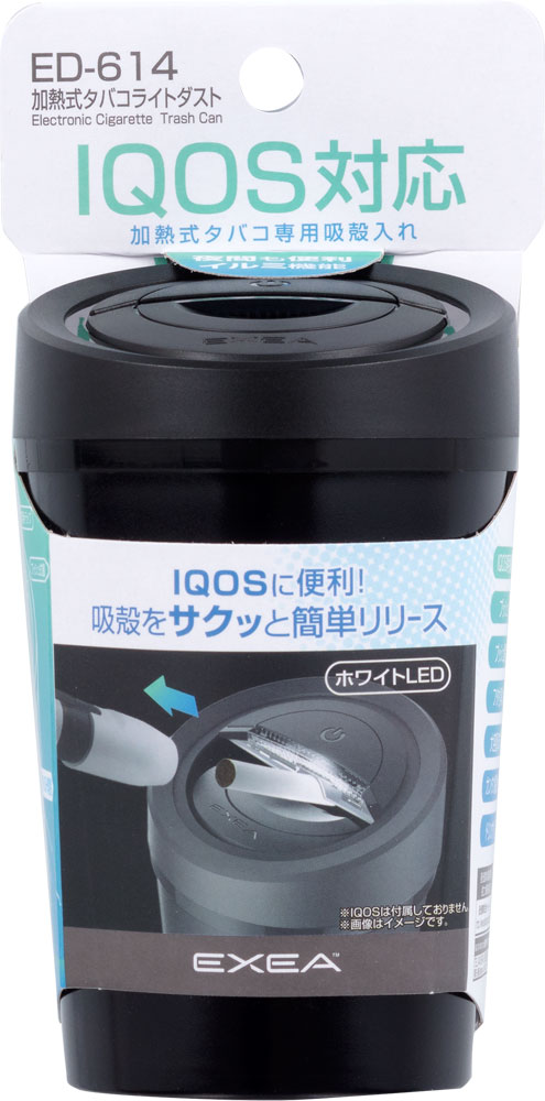 | ●プッシュイルミ機能(ホワイトLED点灯)が付いて、夜間も便利な加熱式タバコ専用の吸殻入れです。 ●開閉がラクなプッシュ式の蓋なので、素早く吸殻を捨てられて、臭いもカットします。 ●IQOSの吸殻を、蓋で挟んで引抜く簡単リリース機能付きです。 ●IQOSの吸殻が60本以上入る大容量です。 |