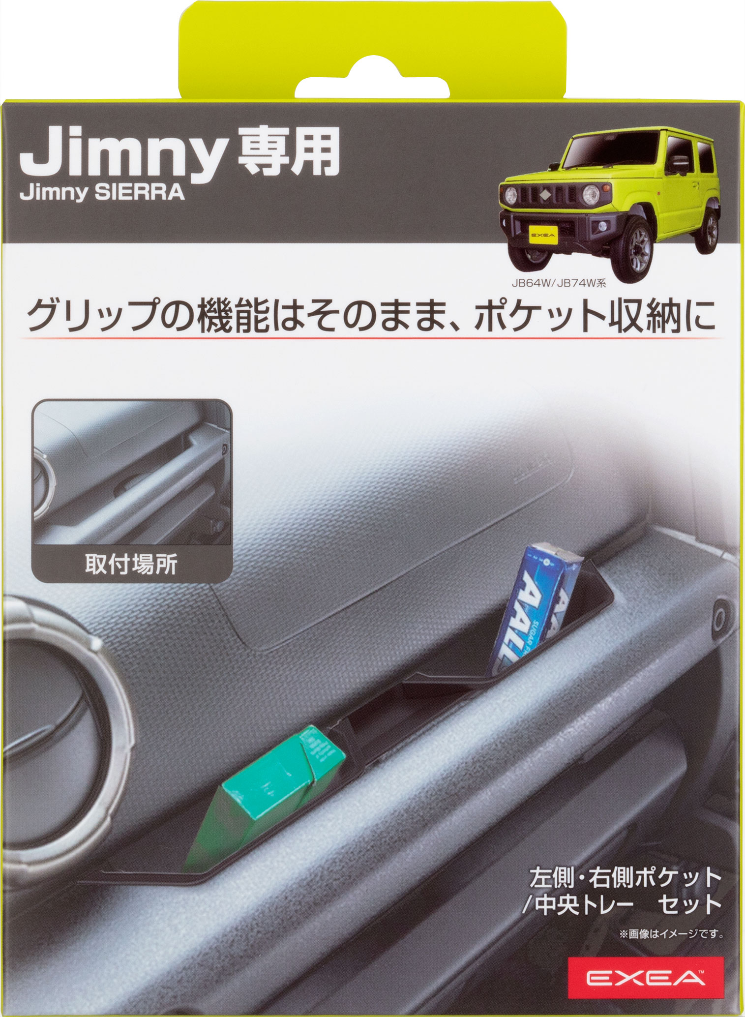 | ●Jimny・Jimny SIERRAの助手席のアシストグリップ* を、グリップ機能をそのままにポケット化できます。 (*正式名称:助手席乗降グリップ) ●ガムや飴、タバコなどの小物をチョイ置きできて便利です。 ●ぴったりフィット、握っても痛くない。 ●左右2個セット+中央トレー。 ●掲載の製品は、スズキ Jimny(JB64W系)・Jimny SIERRA(JB74W系)・Jimny NOMADE(JC74W系)専用です。 ※一部の車種には、取付けできない場合があります。詳しくは、下記の適合表をご確認ください。 <適合表のリンク> ※本製品は、調査日2025年8月現在の車種に適合します。 調査日以降にマイナーチェンジした車には使用できない場合があります。 ●掲載の製品の適合型式 : Jimny(JB64W系) 【1型~4型】、 Jimny SIERRA(JB74W系)【 1型~4型】、Jimny NOMADE(JC74W系)【 1型 】 ※詳しくは、下記の型式表をご確認ください。 <型式表のリンク> ※本製品は、調査日2025年7月現在の車種に適合します。 調査日以降にマイナーチェンジした車には使用できない場合があります。 |